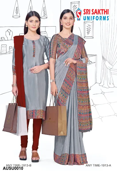 Established in the year 1996, Sri Sakthi Uniforms has been recognized as one of the leading manufacturer and supplier of School uniforms, Womens Uniform Sarees, Womens uniform chudidhars and mens uniform. Over the years Sri Sakthi Uniforms has mastered the art of uniform making and delivering the right uniform tailored to the clients specifications. We constantly strive to bring you new and innovative uniform designs with the finest premium quality fabrics like crepe, georgette and synthetic. We are a renowned manufacturers and suppliers of Uniform Sarees and uniform Chudidhars.